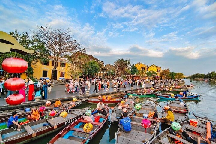Discover the essence of Central Vietnam on a full-day adventure from Da Nang. Begin your journey at Cam Thanh Coconut Village, where you’ll learn traditional fishing techniques and glide through tranquil waterways on a bamboo basket boat. Continue to Hoi An Ancient Town, a UNESCO World Heritage Site, to explore historic landmarks such as the Phuc Kien Assembly Hall, Tan Ky or Phung Hung Ancient Houses, and the iconic Japanese Covered Bridge. Immerse yourself in Hoi An’s charm with cultural performances, local handicrafts, and authentic Vietnamese cuisine for dinner. Conclude your day with a peaceful lantern boat ride on the Hoai River, releasing flower lanterns for good fortune and strolling through the magical Lantern Street night market. Experience the perfect blend of culture, history, and romance in one unforgettable Hoi An tour from Da Nang.