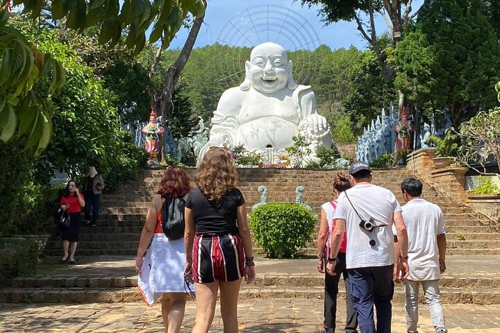 Discover all three of Da Lat’s most famous waterfalls in one unforgettable tour! Explore the majestic Elephant Waterfall, the stunning layered beauty of Pongour Waterfall, and the thrilling Datanla Waterfall. Along the journey, immerse yourself in Da Lat’s local culture with visits to unique countryside attractions such as a bamboo knitting village, cricket farm, Cuong Hoan silk factory, Me Linh coffee plantation, and Linh An Pagoda with its giant Lady Buddha statue. Children’s tickets are based on height: under 90cm (Infant – free), 90–110cm (Child – 50% off), above 110cm (Adult ticket).
