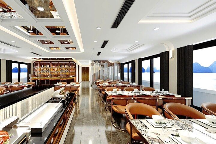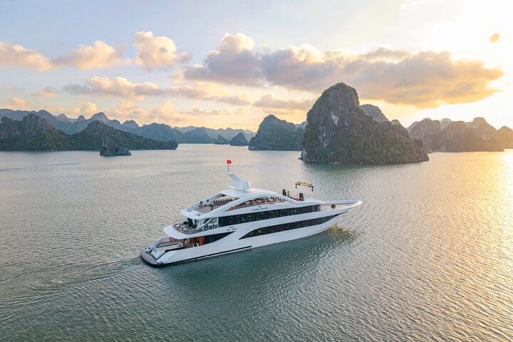Embark on an unforgettable full-day journey from Hanoi to Halong Bay aboard a 5-star luxury cruise, designed to showcase the breathtaking beauty of this UNESCO World Heritage Site. Begin your adventure with a comfortable limousine transfer from Hanoi before boarding the elegant cruise for a day of exploration. Admire thousands of limestone karsts, visit stunning caves, and enjoy swimming or kayaking in the emerald waters of Halong Bay. Savor a delicious buffet lunch while taking in panoramic views of the bay’s majestic scenery. This premium day cruise is the perfect way to experience the charm, comfort, and natural wonders of Halong Bay.