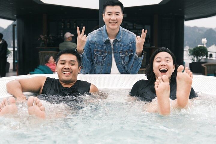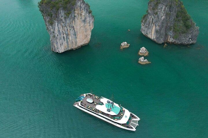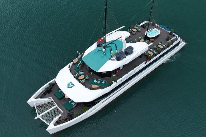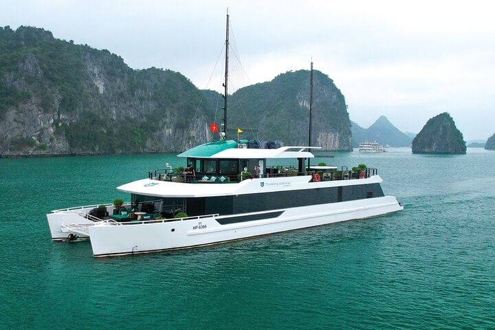 Experience the Catamaran Luxury Day Cruise to Halong Bay and Lan Ha Bay from Hanoi or Tuan Chau, a top-rated premium tour that blends luxury, adventure, and breathtaking scenery. Depart from the Hanoi Old Quarter in a comfortable limousine or join directly at Tuan Chau Marina, then enjoy welcome drinks, a gourmet buffet lunch, and explore highlights like Dark & Bright Cave, kayaking or swimming, a cooking class, and a sunset tea party on the sundeck. Spend up to seven hours cruising through the magnificent limestone landscapes and relax as every detail is perfectly arranged for your unforgettable Halong Bay experience.
