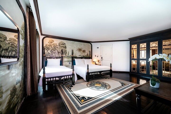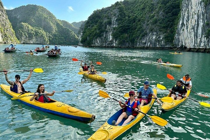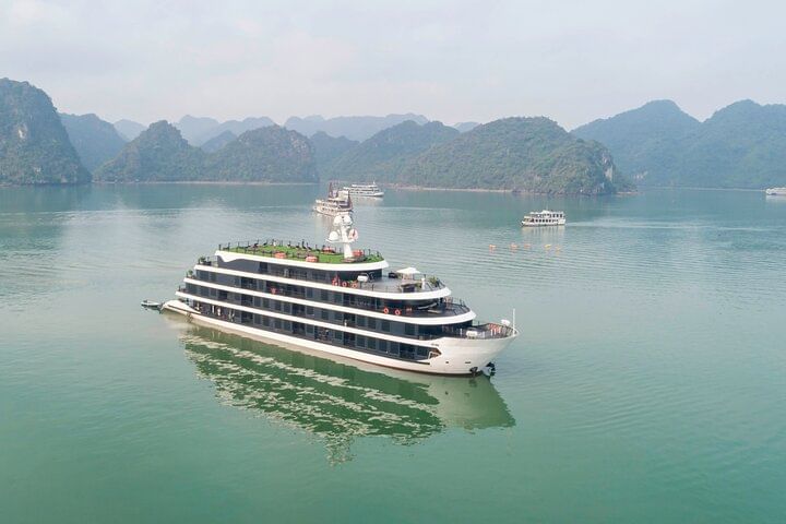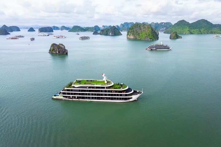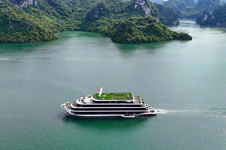 Take the cruise on an adventure through the breathtaking limestone mountains. Stops at unspoiled beaches and natural areas that are only reachable by small boats are included in the itinerary. Savor delicious seafood from the area, swim in the chilly blue waters, and go caving and tunneling on a kayak. As dusk draws in, visitors can unwind on the sundeck beneath the stars or mingle over cocktails. Awakening to the stunning dawn over Lan Ha Bay and touring the immaculate Cat Ba Island await an even more amazing experience the next day.