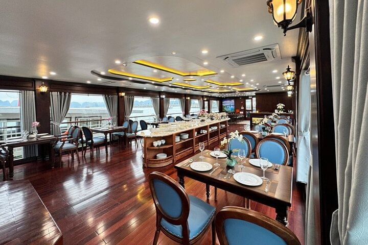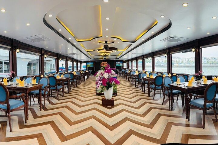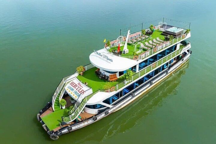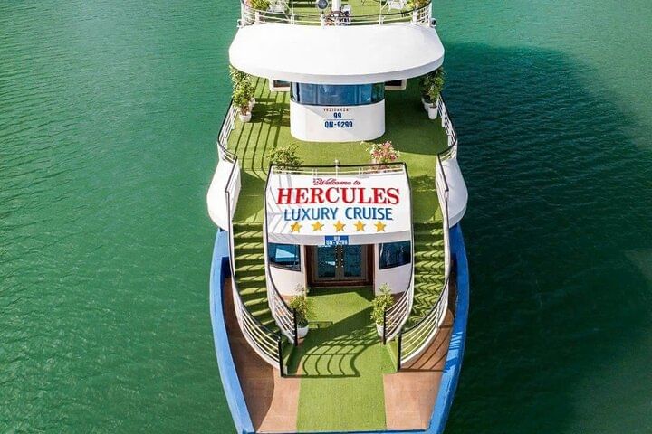 Hercules Cruise Group offers two premium luxury cruises in Halong Bay – Hercules Premium Cruise and Hercules Luxury Cruise – combining traditional Eastern charm with modern luxury. Perfect for travelers seeking high-end amenities and professional service, these cruises provide spacious accommodations for up to 99 guests, ensuring comfort and relaxation throughout the journey. Departing conveniently from Hanoi, the 6-hour day cruise lets you explore the stunning landscapes of Halong Bay, including iconic limestone karsts and hidden gems, while enjoying world-class service and onboard dining. Experience the same highlights as the overnight cruise in a convenient day-trip format, making it an ideal luxury escape from Hanoi.