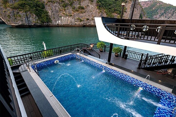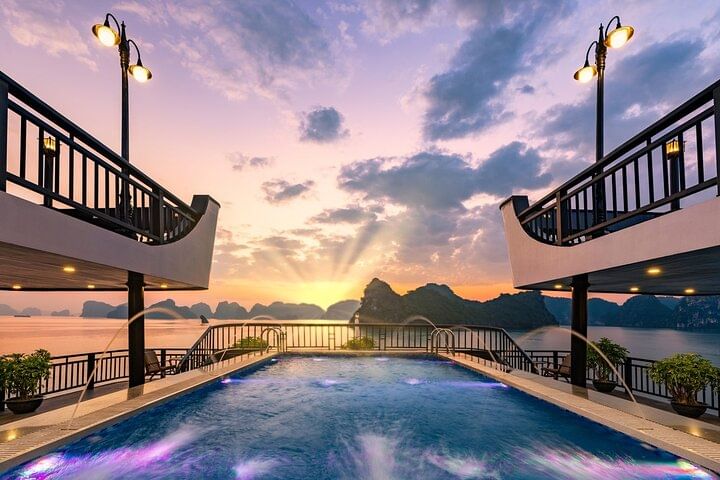 Rita Cruise is a newly launched 5-star++ luxury cruise, offering world-class amenities for an unforgettable experience. Be among the first to enjoy our swimming pool and private soundproof karaoke lounge, while all cabins feature private balconies with stunning ocean views. Our exclusive itineraries explore the pristine and less-crowded Lan Ha Bay and the iconic Halong Bay – a UNESCO World Heritage site, offering a truly unique journey. Guests can choose to start the cruise from Hanoi with hotel transfers or board directly at Halong/Tuan Chau Marina. Experience premium service, fine dining, and original routes designed to make your Halong Bay adventure extraordinary.